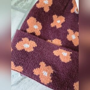 ✨ y2k coquette, floral knit beanie, burgundy hat, soft winter accessories, indie aesthetic