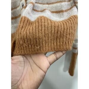 Free People Y2K Coquette Indie Sleaze Fall Alpaca Wool Blend Striped Cropped Cardigan Sweater M Academia 90s Autumn Minimalist Retro Grandpa Academia Soft Girl Striped Brown Orange Beige.