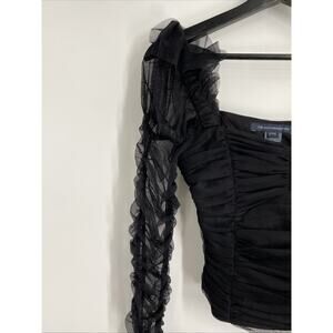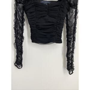 The Y2K Corset Top is a stylish and whimsical piece perfect for a party or casual outing. With its fitted sleeve and sheer mesh fabric, this black top exudes a celestial fairy vibe. The cropped style and long sleeve make it trendy and on-trend, while the polyester and nylon material ensures easy care with machine washability. Ideal for a size 0 and featuring a zip closure, this top by French Connection combines gothic and fairy themes for a unique and captivating look.