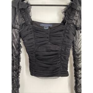 Y2K Corset Top Fitted Sleeve Size 0 Black Whimsigoth Sheer Celestial Fairy 985