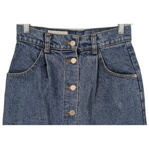 Y2K Cotton Ginny Denim Skirt Size 5 Blue Cotton Pleated Western Button Up
