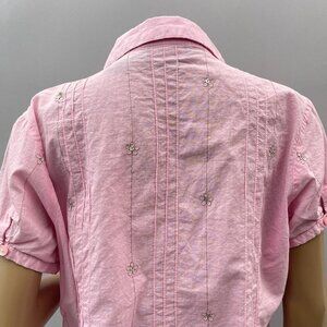 Y2K Cotton Womens Pink Embroidered Button-Up Shirt Lemon Grass Studio Size L