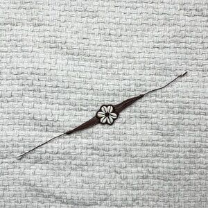 brown leather bracelet with a cowrie shell flower and tie closure