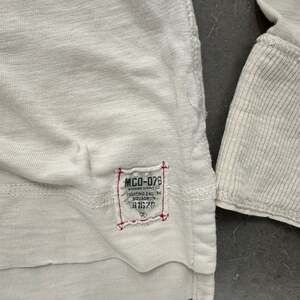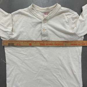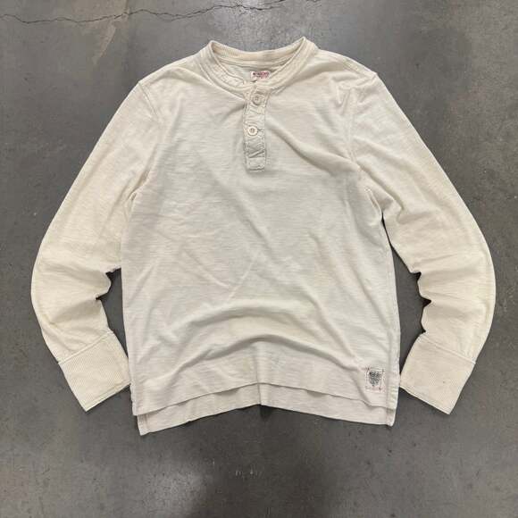 Y2K Cream Henley Long Sleeve Shirt Military Inspired Raw Stitch Small