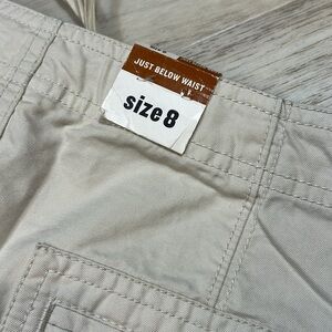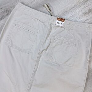 Almost vintage, old navy spring 2006 cream khaki long maxi skirt with cargo chino style pockets in the front and back and drawstring waist that hits just below the waist. If you’re looking for that low rise maxi skirt look from the early 2000s, this is it!