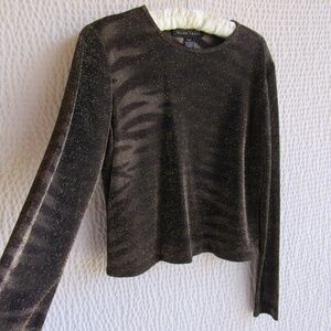 Y2K Crop Animal Print Metallic Pullover Top 12 12P Large Form Fit Burgundy Green