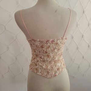 Y2K Crop Tank Top • Pink Lace • Floral • Size Small