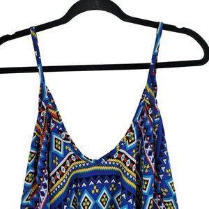 Y2K Crop Top L Blue Aztec Bandana Colorful Flowy Lightweight Sexy Festival USA