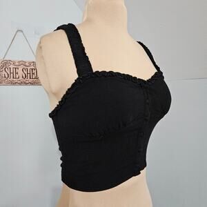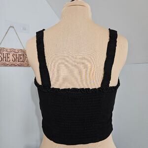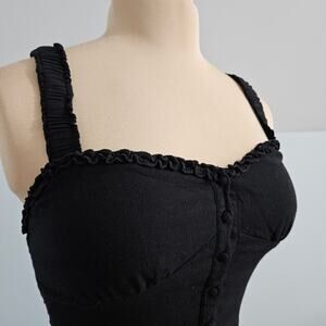 Y2K Crop Top Sweetheart Neckline Smocked Back Button Front Ruffled Black Large