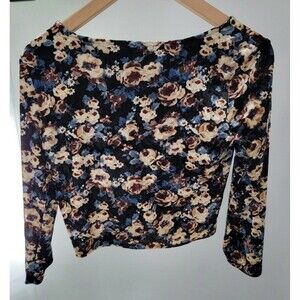 Y2K Cropped Floral Velvet Top Black Long Sleeve Forever 21 Stretch Purple