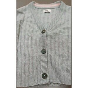 Y2K Cropped Ribbed Cardigan S/M Gray Soft Girl Grunge Button Sweater LNC