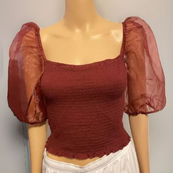 Y2K Cropped Top Square Neck Puff Sleeve Boho Fairy Grunge Vampire Coquette Sz L