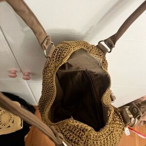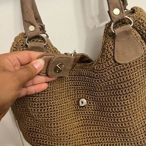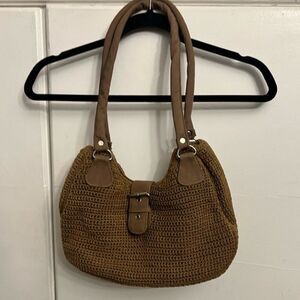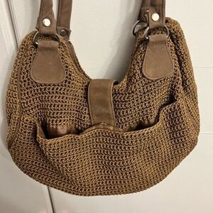 Super cute brown purse knit / crotched In great condition no flaws, very clean Granny shoulder purse Magnetic buckle in front Spacious Back pocket Inside pocket