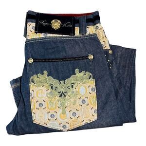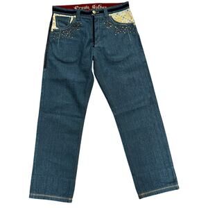 Y2K Crown Holder Jeans Authentic Embroidered 34X33 Men's Hip Hop