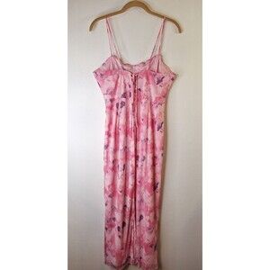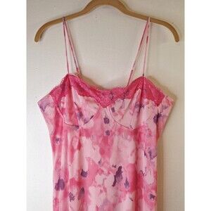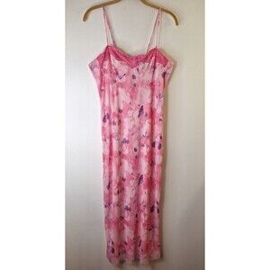 Y2K Crystal Doll Pink Floral Slip Dress Women's Sz XL Lace Up Romantic Fairycore