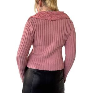• Y2K DANCHINEE PINK KNIT MOTORCYCLE JACKET SIZE M
