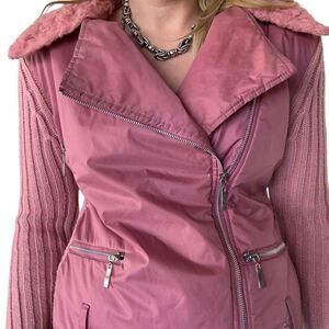 • Y2K DANCHINEE PINK KNIT MOTORCYCLE JACKET SIZE M Probably missing belt