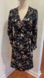 Y2K DITZY FLORAL BLACK MIDI WRAP DRESS CREPE TEXTURED FABRIC RELAXED & FLOWY XS