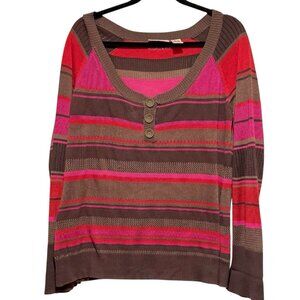 Y2K DKNY Jeans Brown Pink Red Striped Long Sleeve Henley Sweater Womens XL
