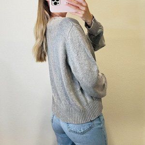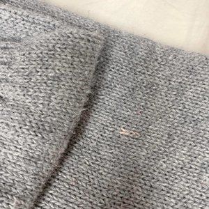 Gray knit crewneck sweater from the early 2000s. Features the brand name DKNY embroidered across the front. Has a slightly cropped and boxy fit. Normal signs of wear. Small pink discoloration mark on the right sleeve, but hardly noticeable when worn. Otherwise, in great condition!
