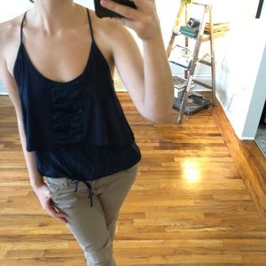 Dallin Chase Blue Pleated Silk Layered Drawstring Sleeveless Racer Back Cami Tank Top Blouse Shirt size Medium (fits XS / S / M )
