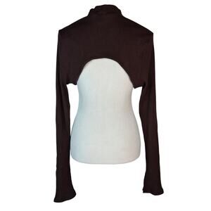 Y2K Dark Brown Ribbed Bolero Shrug Sweater Longsleeve Mock Neck Layering Piece