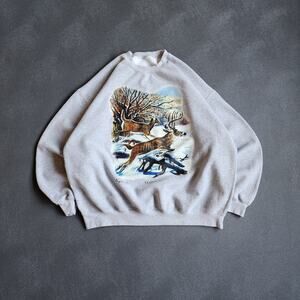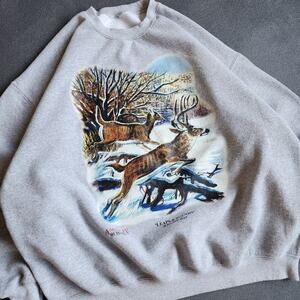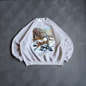 Y2K Deer Winter Wonderland Nature Grey Sweatshirt XXL