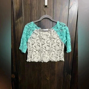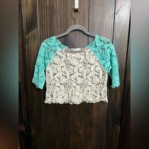 Y2K Delia’s White/Teal Lace Crop Top, Size: Medium