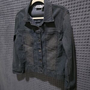 Y2K Denim Jacket Capris Set Sz8 Med Chico Design Grunge Flare Jean Stretch Waist