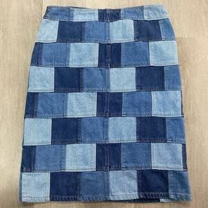 Y2K Denim Jean Skirt Knee Length D’Mode Classix Size 11 Patchwork Front Slit