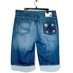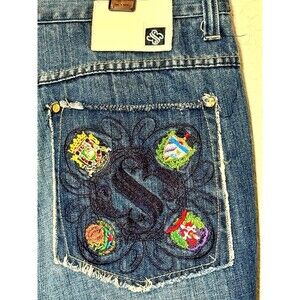 Y2K Denim Shorts Size 40 Embroidered Back Pocket Streetwear Baggy Short
