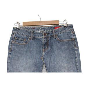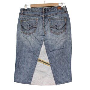 Y2K Denim Skirt Size 4 Knee Length Blue Patchwork Boho Festival Pockets
