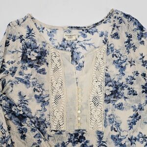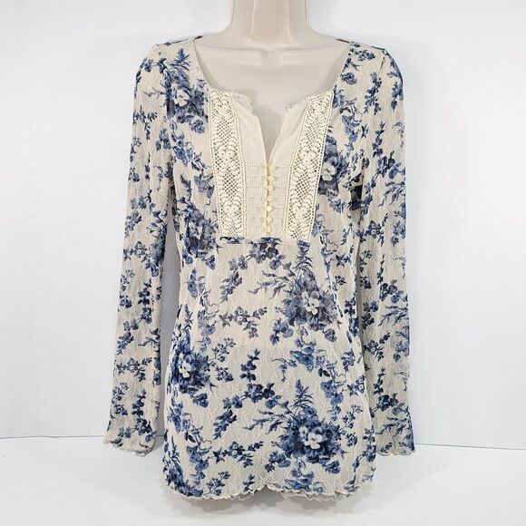 Y2K Denim & Supply Ralph Lauren Blue Floral Lace Henley Top L Long Sleeve Boho