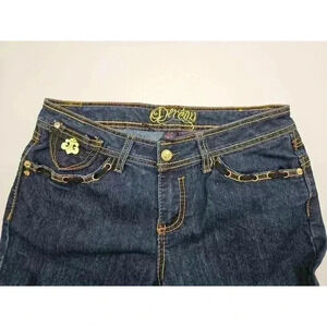Y2K Dereon Women's 7/8 Straight Leg Dark Denim Jeans with Pocket Details
