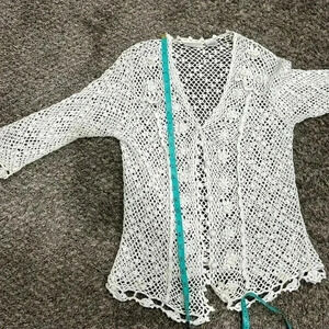 Y2K Design Assets Vintage Crochet Linen-Cotton Cardigan Women's Sz M