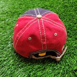 Y2K Disney Parks Disneyland distressed varsity strapback hat navy red colorblock collegiate letter D embroidery