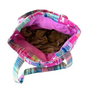Y2K Disneyland Resort Madras Plaid Bucket Tote. Pink and Blue madras plaid with Mickey Mouse accent. Good preowned condition with a few marks from use, both inside and out. See all pictures.