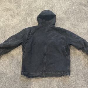 Y2K Distressed Carhartt J141 Black Men's Canvas Sherpa Lined Hooded Work Coat XL
