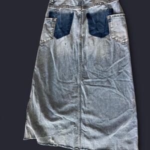 Y2K Distressed high rise blue denim midi skirt #grungevibes #y2k