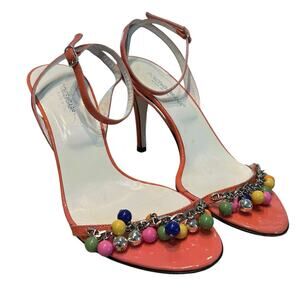• Features: Pink, Multicolor Beads, Beaded, Patent Leather, Strappy, Open Toe, Vernice Style