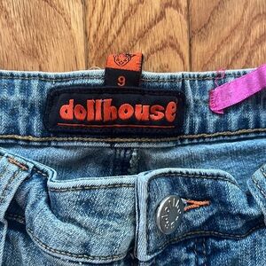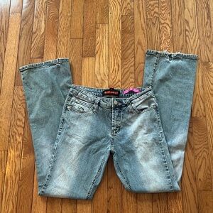 Y2K DollHouse Denim Jeans Flare Bootcut Distressed sz 9 28” Stretch mcbling