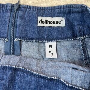 Y2K Dollhouse punk military denim flare skirt, size 9