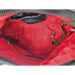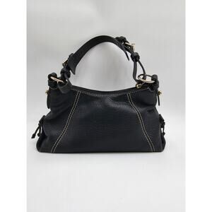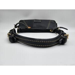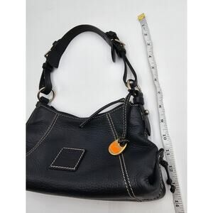 Y2K Dooney & Bourke Black Pebbled Leather Mini East West Slouch Hobo Duck Charm