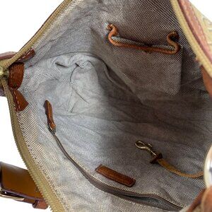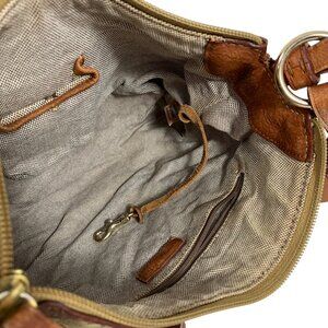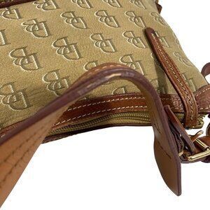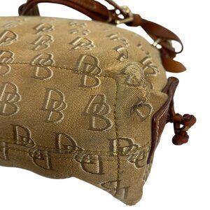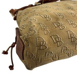 Y2K Dooney Bourke Logo Jacquard Canvas Hobo Shoulder Bag Leather Buckle Strap