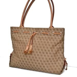 Y2K Dooney Monogram Canvas Tote | Preppy Neutral Shoulder Bag | Fall Heritage