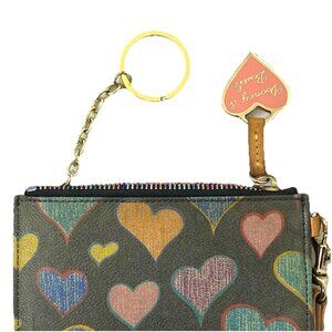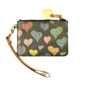 Y2K Dooney and Bourke Rainbow Heart Coin Purse 5.75"×4.25" Muted Dark Green