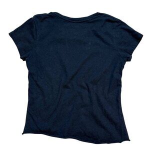 Lightweight and comfortable short sleeve black t-shirt with a fun pink logo print, ideal for casual wear or lounging.