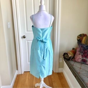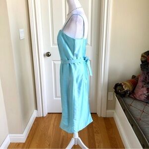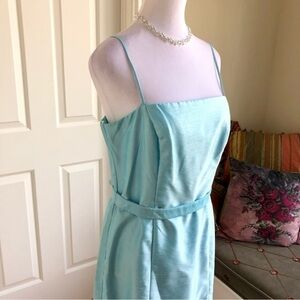 Beautiful faux silk light blue party dress with belt, back zip, minor flaw, y2k, vintage