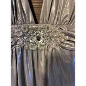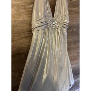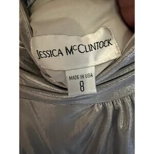 Y2K Dress Jessica Mc Clintock Silver Size 8 Medium Vintage Party Short V neck