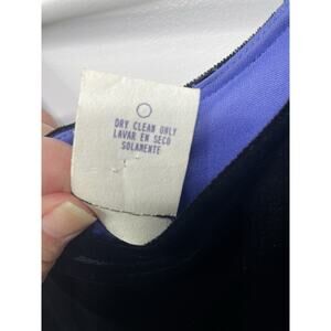 Black velvet with purple/blue laser cutout floral design across the body of the dress
